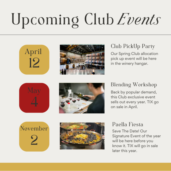 Not a Wine Club member yet? No problem. We have three Clubs to choose from; 6-bottle, 12-bottle, and 24-bottle with shipments twice a year. Club benefits include wine discounts, complimentary tastings, an Insider Newsletter, and club-exclusive events. Sign up for our Wine Club Today; either visit us online, visit the tasting room Thursday-Sunday, or visit our Wine Club Page.